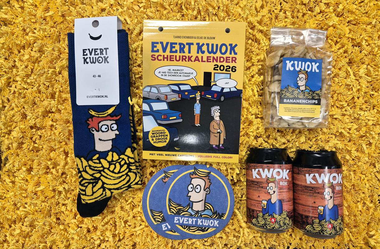 Ben of ken je een ZZP-er die dit jaar ook wel eens een kerstpakket verdient? Of je wil je gewoon iemand verrassen met een doos(je) vol droge humor en bananen? Bestel dan een Evert Kwok pakket! Je kan het pakket door ons rechtstreeks naar de gelukkige ontvanger laten sturen. Voor een kleine meerprijs (€ 1,50) kan je een korte persoonlijke boodschap toevoegen.